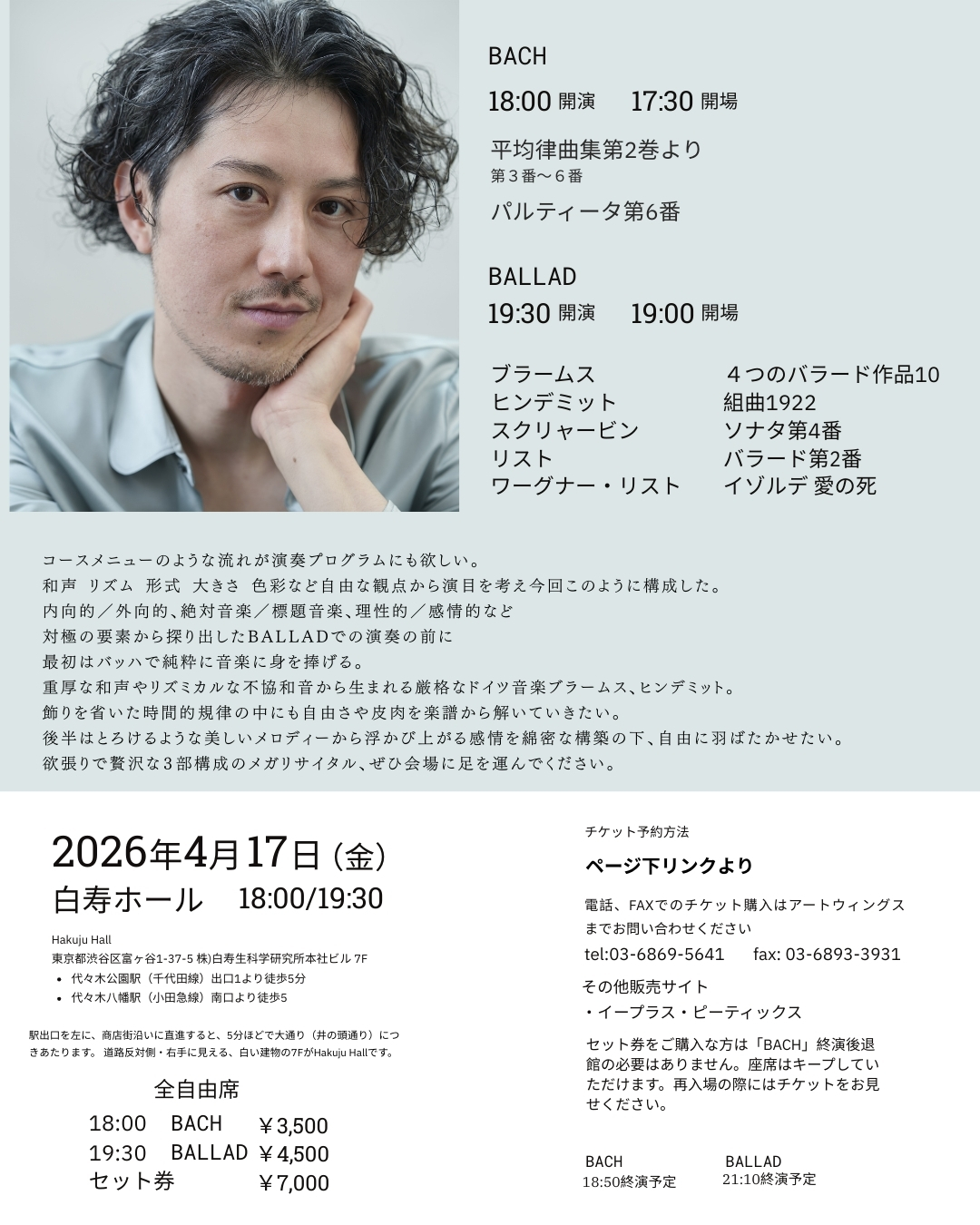 (チケットご希望の方はこちらのページから決済画面へお進みください。購入時にご入力いただいたメールアドレスに2日~3日後に電子チケットをお送りしますので、必ずEメールをご確認ください。決済完了のmirethosからの領収書だけでは入場できません)